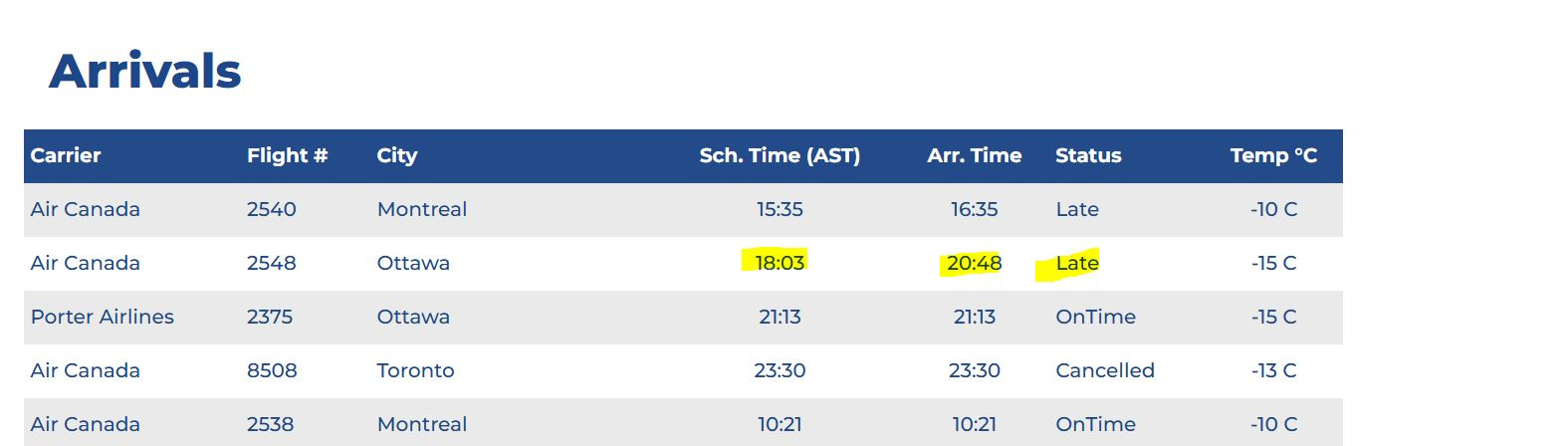 I mentioned a couple of times in the last few weeks that the premier was counting on her Air Canada flight from Ottawa arriving on time to make the speech.