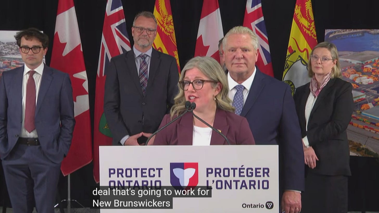 Holt came to the speech venue directly from the Fredericton airport — I’ll get to that — after a meeting in Ottawa with the prime minister and fellow premiers. While there, she got some additional attention because of comments she made at a news conference with Doug Ford about ICE’s enforcement surge in Maine.